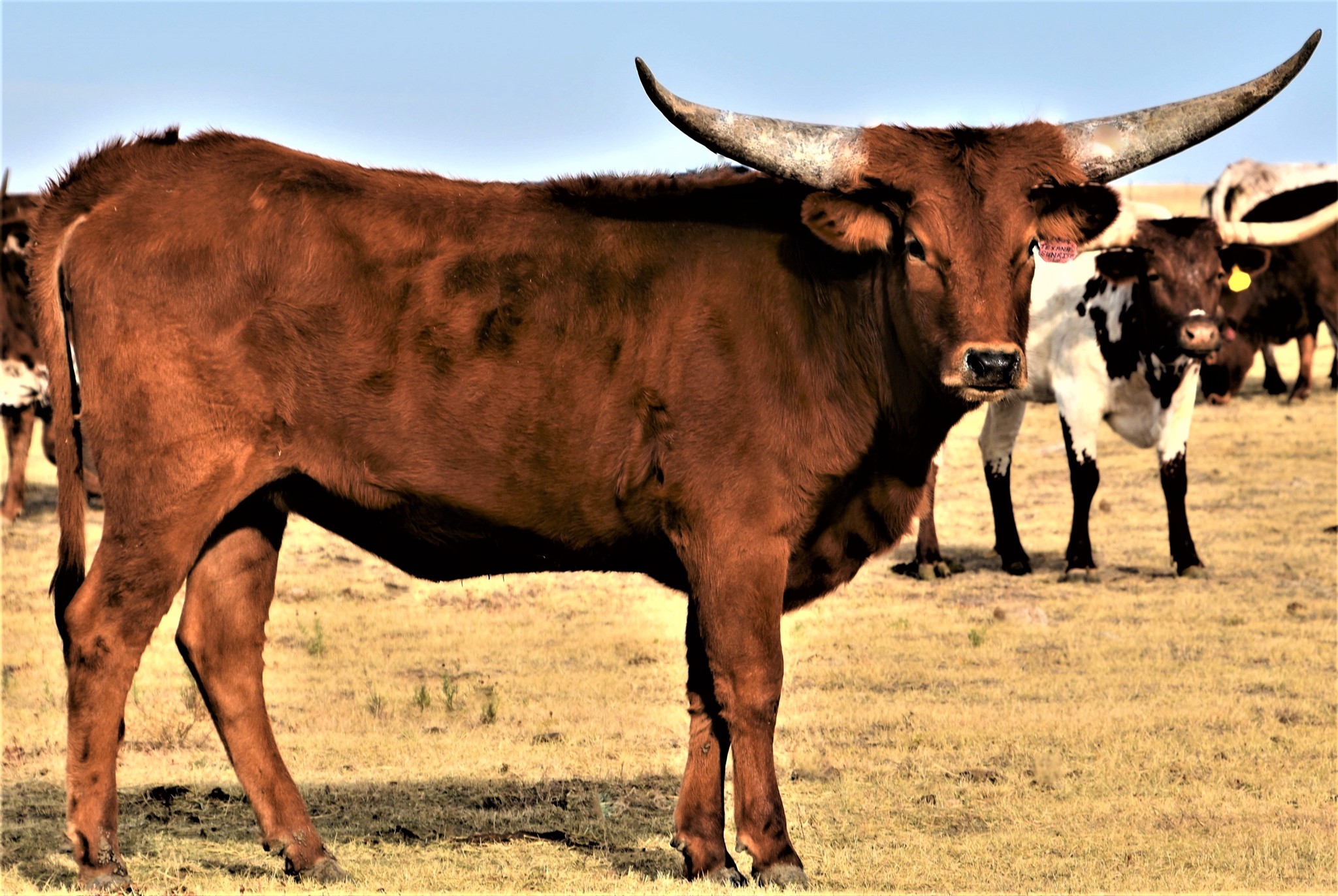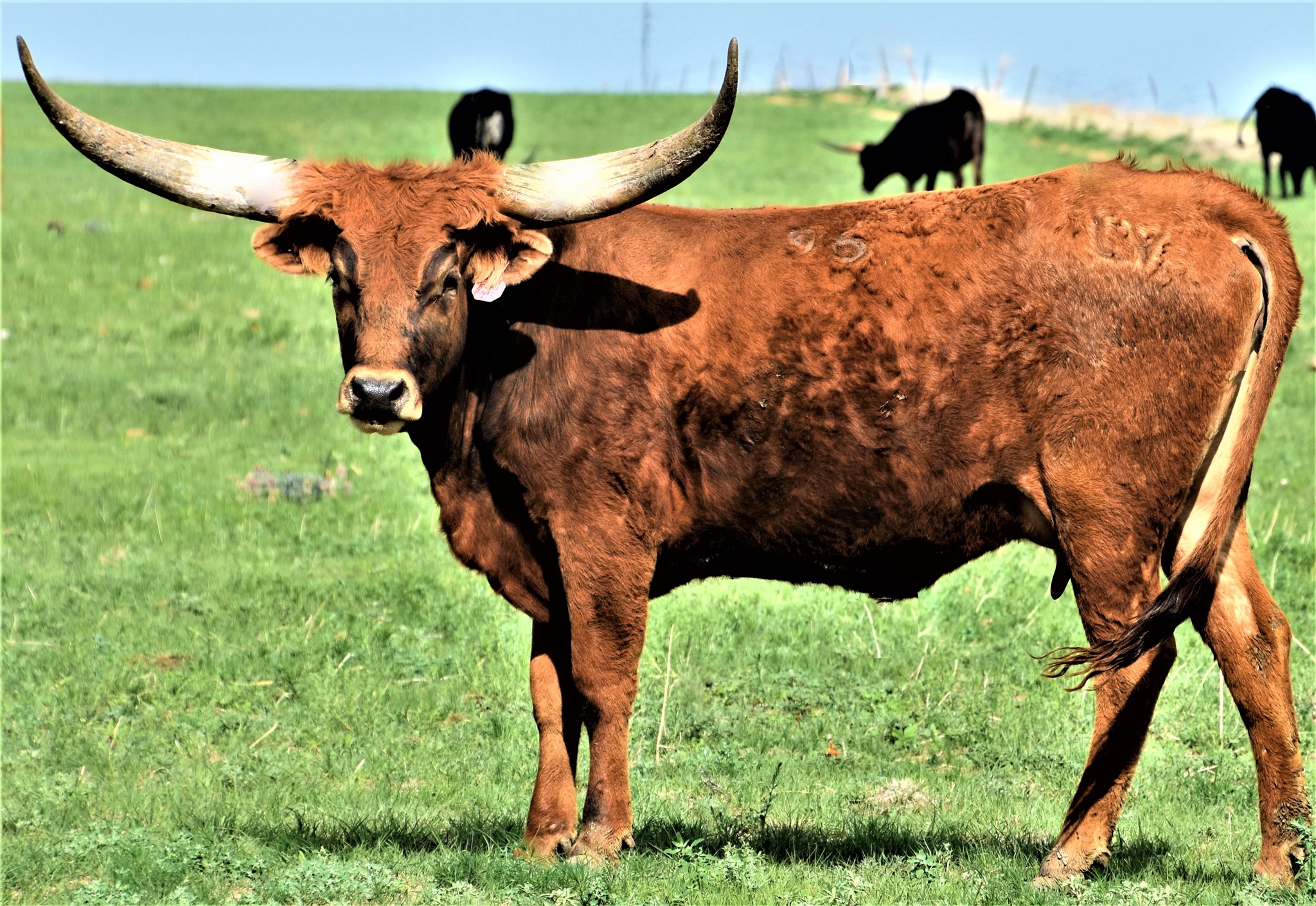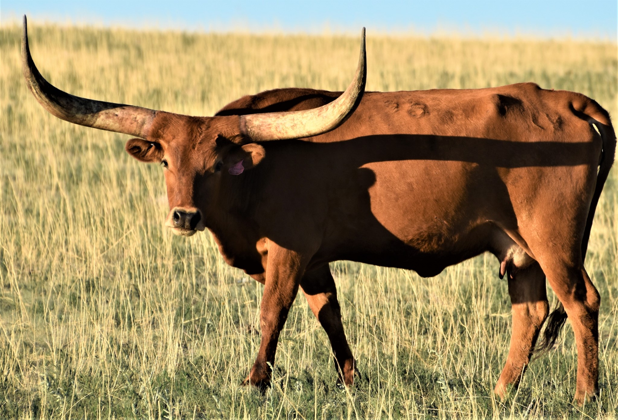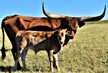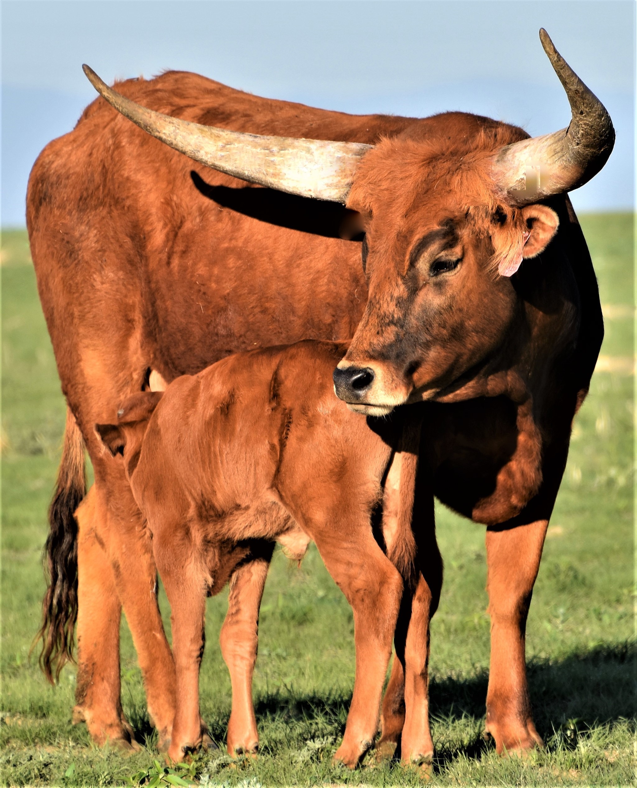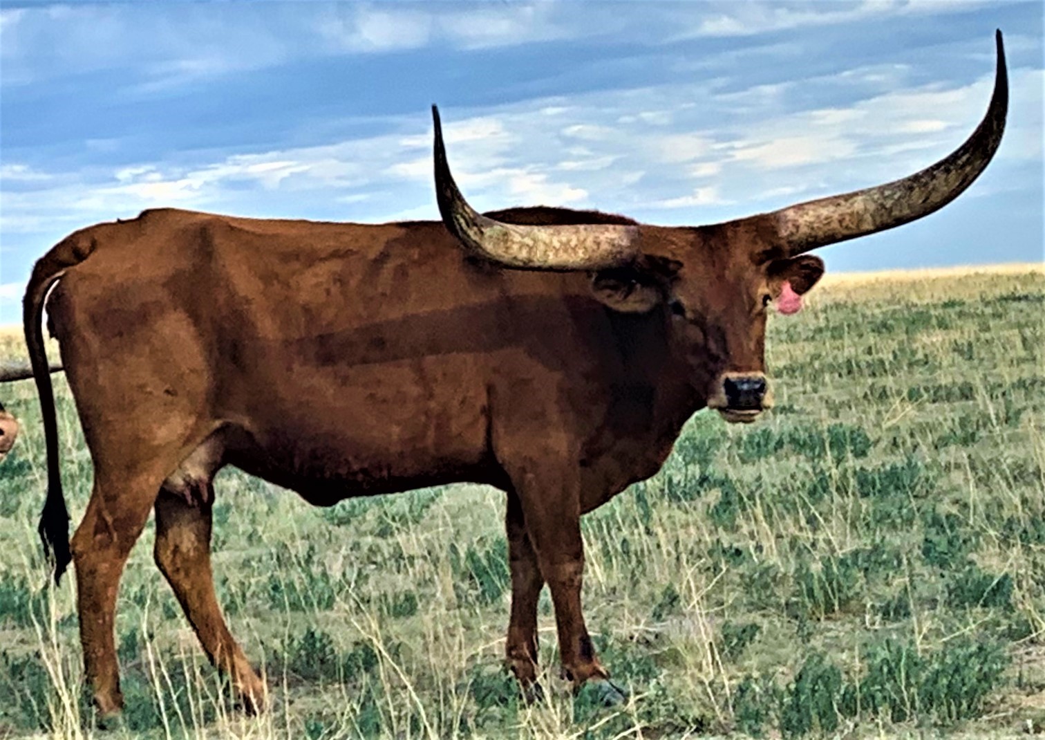 A tall, long, balanced young cow and she has passed on her excellent horn length. Her first calf is our biggest bull calf and he has a very unique color we named him FIRE BALL LV. check him out