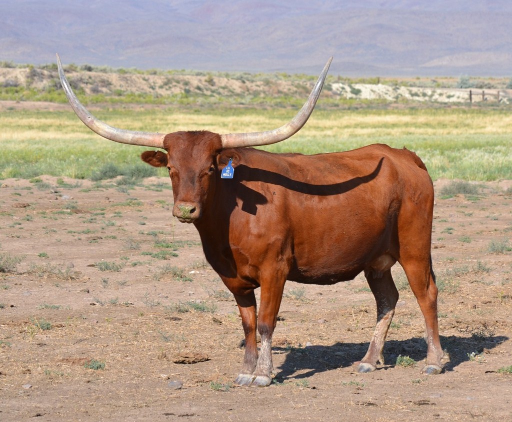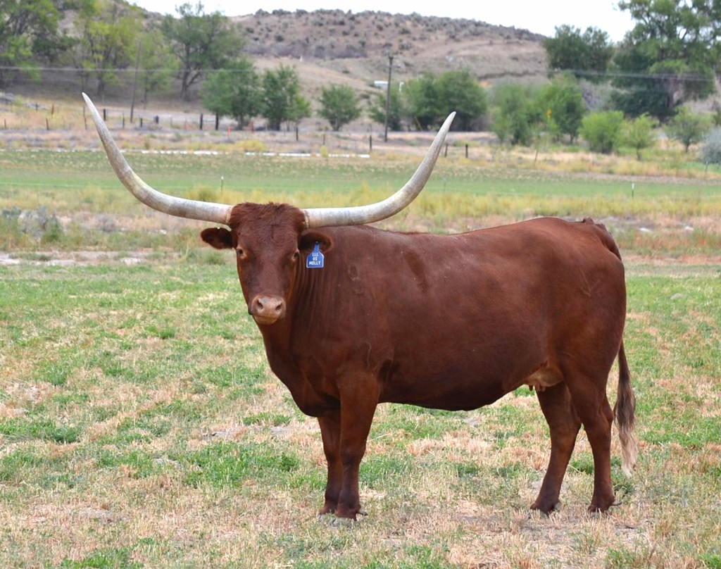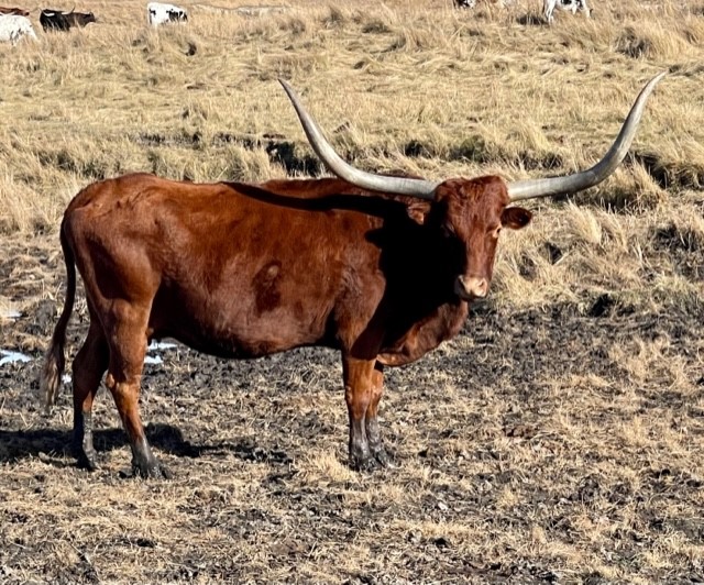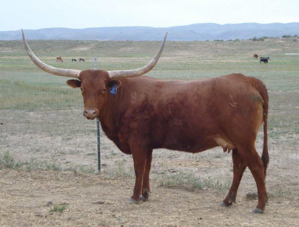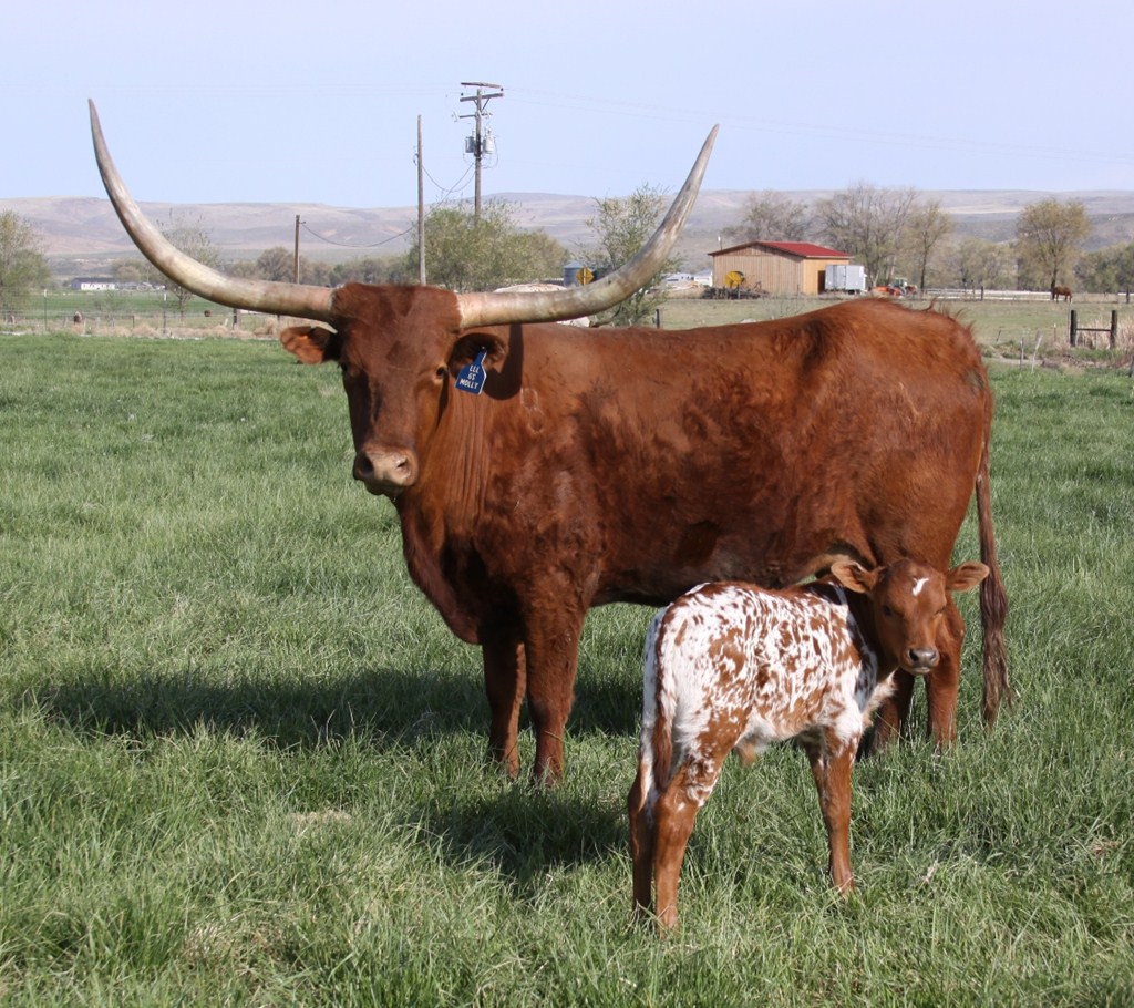 An awesome cow from Larry Stewart's great program. She is the Gunman/Gunsmoke cross and it shows in her huge horn. She has produced several over 70" offspring! Flashy Casanova's Rough Rider Bull calf born 3-17-16. Consigned to the Rocky Mountain Longhorn Sale in August. Confirmed bred to Archer Texa for 2017