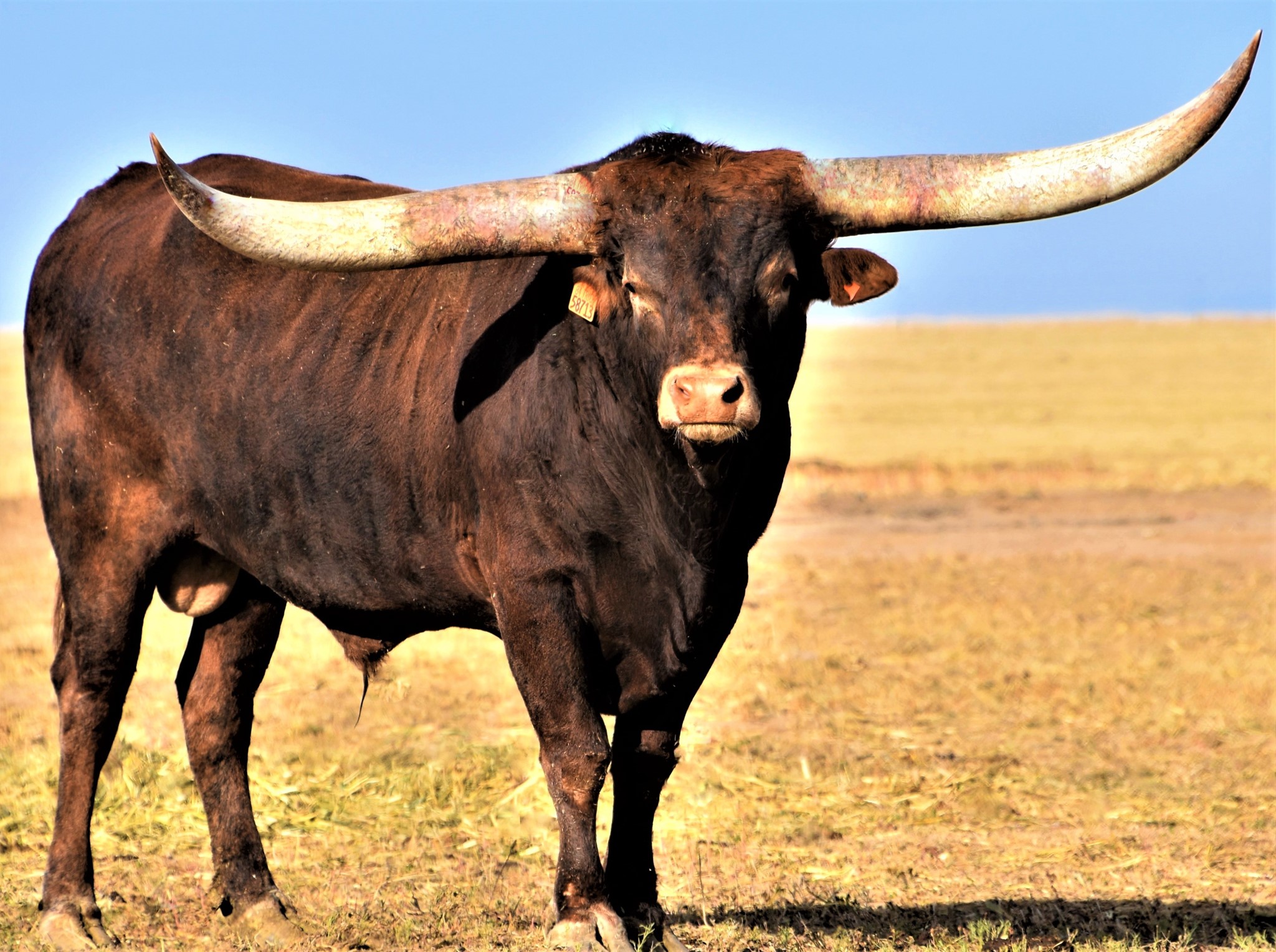 He is still putting muscle and horn. As of Oct 2020 He has won eleven HORN MEASURING championships and now weighs over a TON, with ttt 81.75" and total horn of 109.5" He has been easy to work around and is a solid breeder